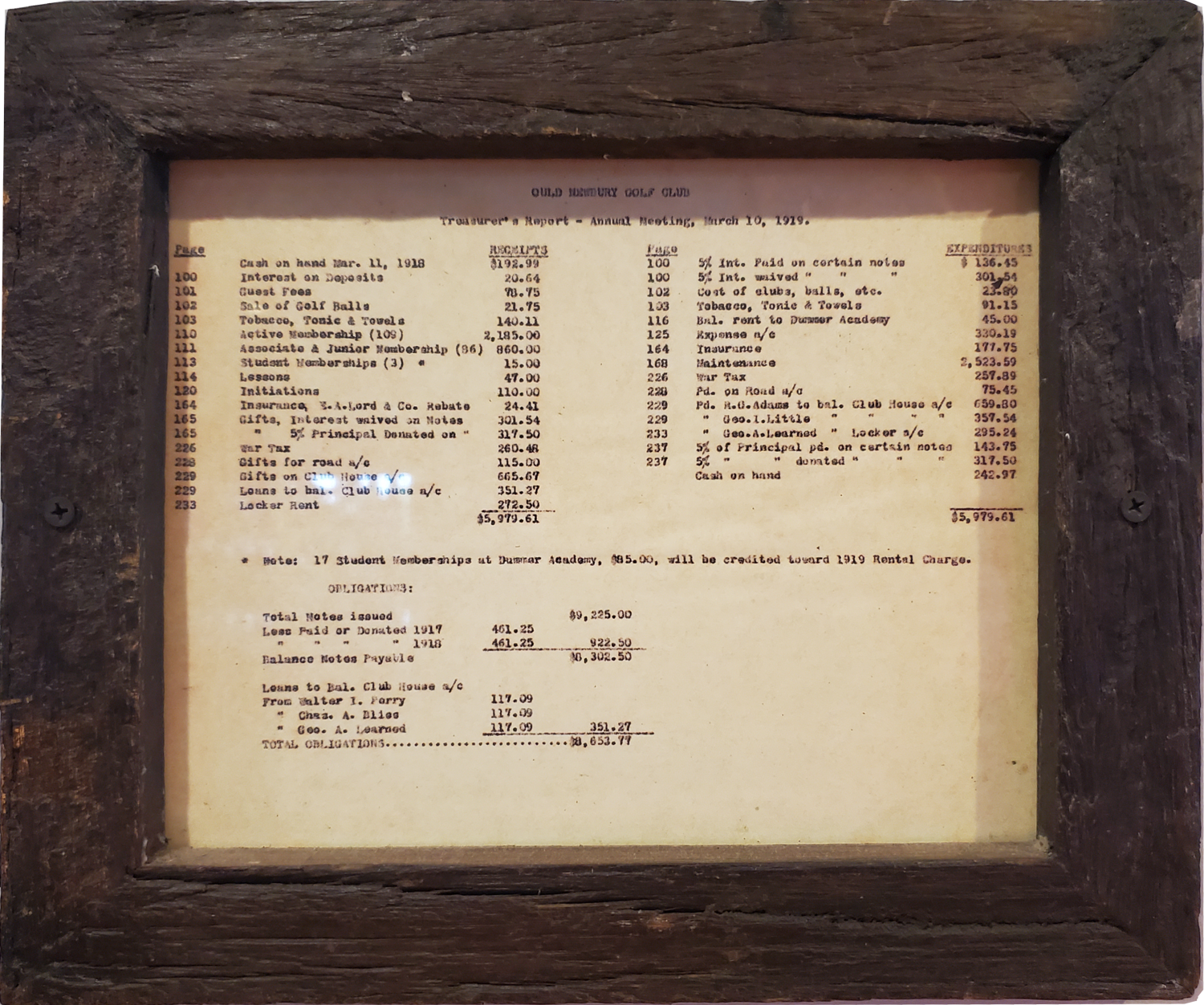 Under the leadership of Benjamin Pearson, Dr. Charles S. Ingham and Joseph Dummer, 60 acres of land were leased from The Governor’s Academy (formerly named Governor Dummer Academy) and in 1915, with a fund of $10,000.00; construction of the golf course began.